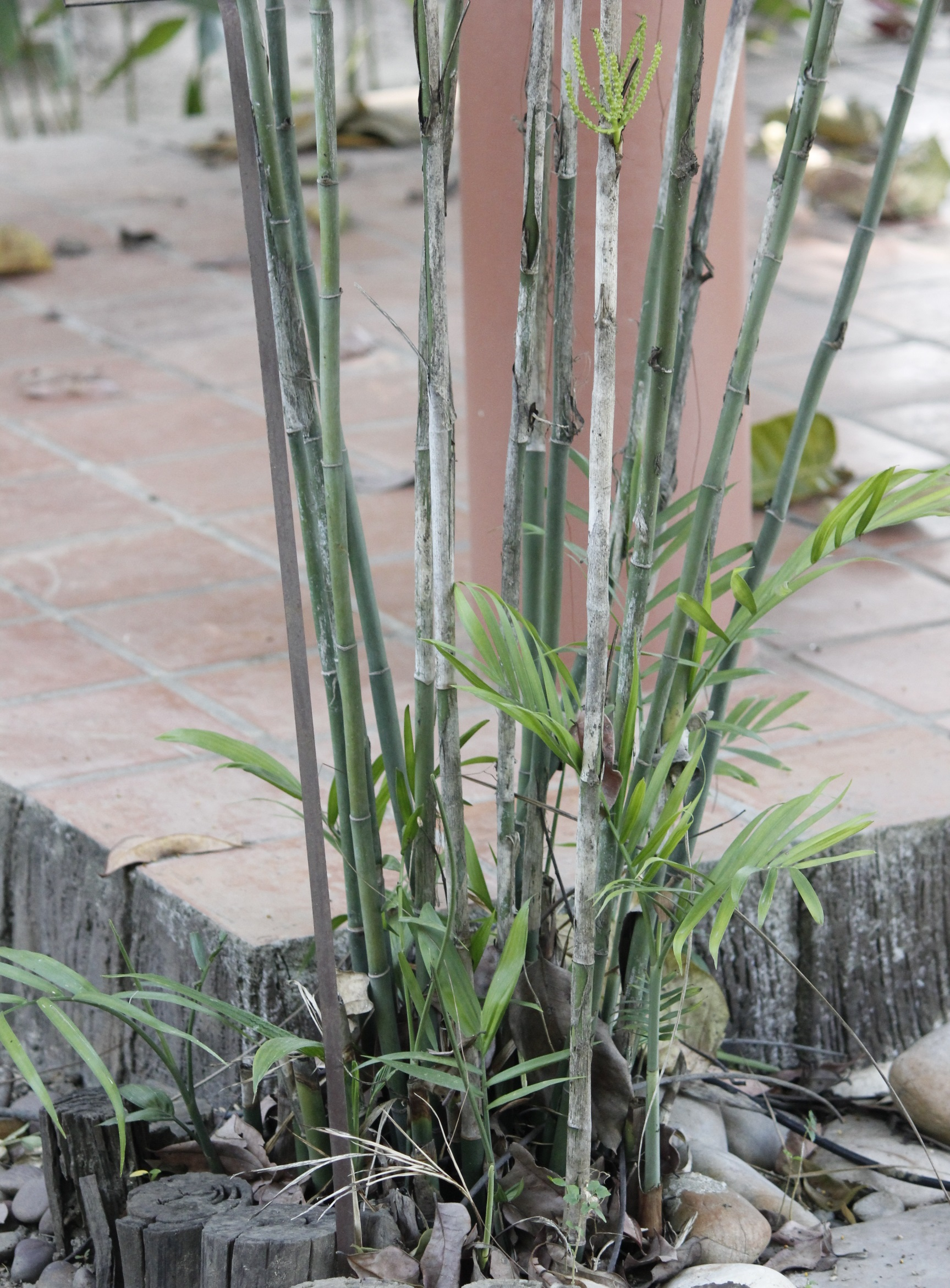 ต้น เป็นปาล์มแตกกอ ลำต้นมีเส้นผ่าศูนย์กลาง 1-2 ซม. สูงได้ถึง 3 ม.
