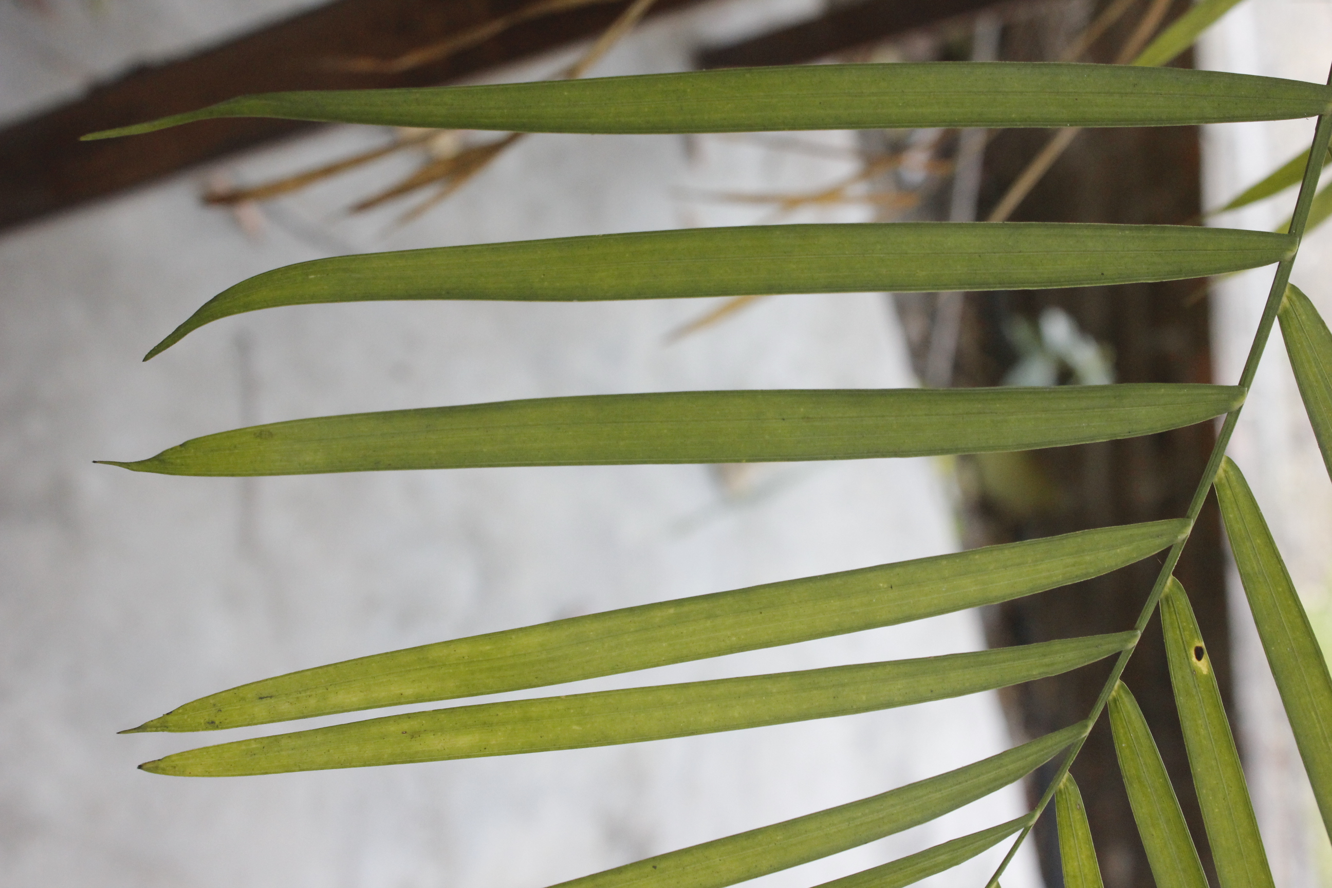 ใบ ใบรูปขนนก ทางใบยาว 0.7-1 ม. ใบย่อยเรียวแหลมสีเขียวเข้ม