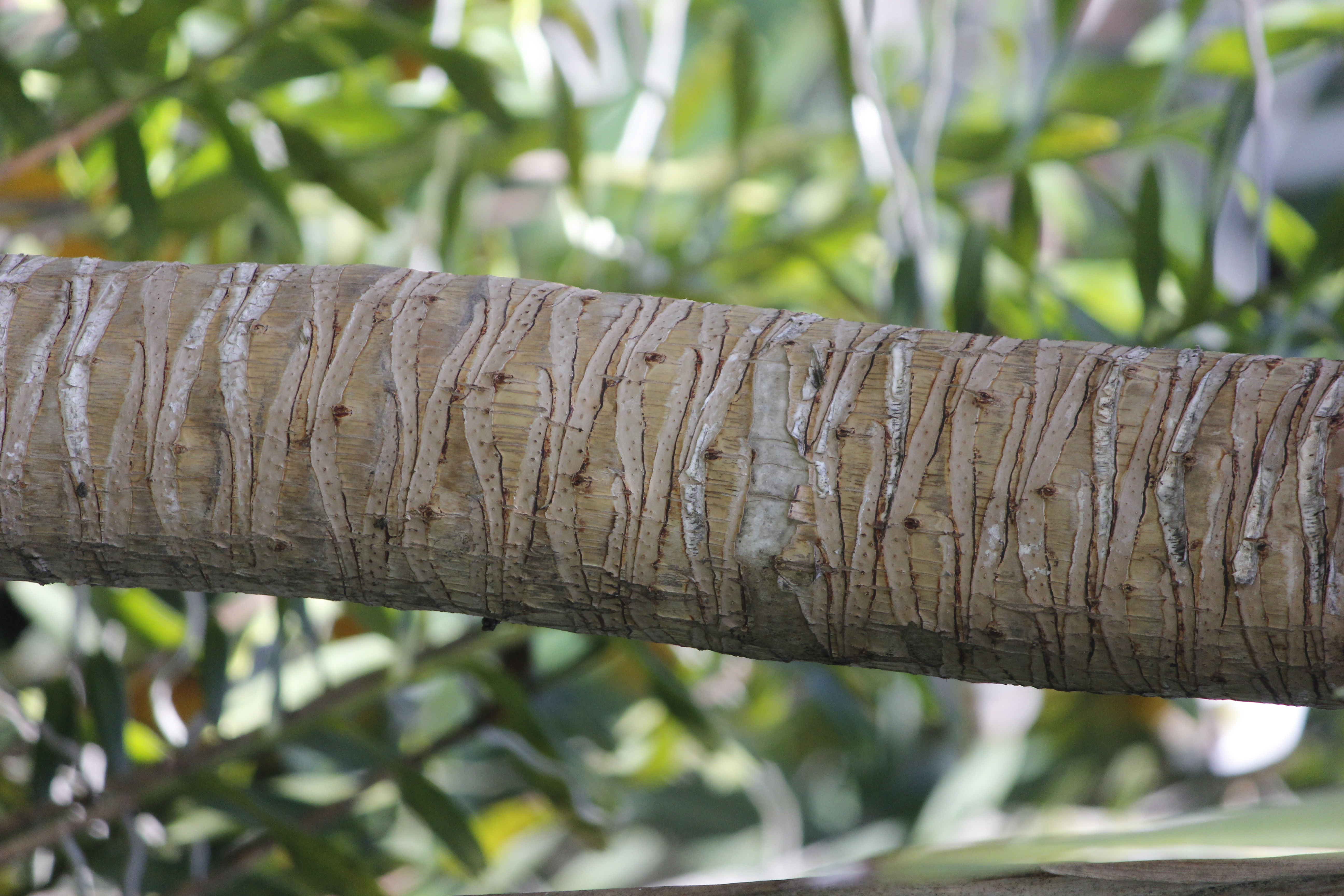 ต้น เป็นไม้ยืนต้น สูงได้ถึง 15 ม. ลำต้นตั้งตรง เปลือกสีครีมอ่อน มีรอยแผลเก่าของใบเป็นร่องวงกลม เห็นได้ตลอดทั้งลำต้น บางครั้งแตกกิ่งได้