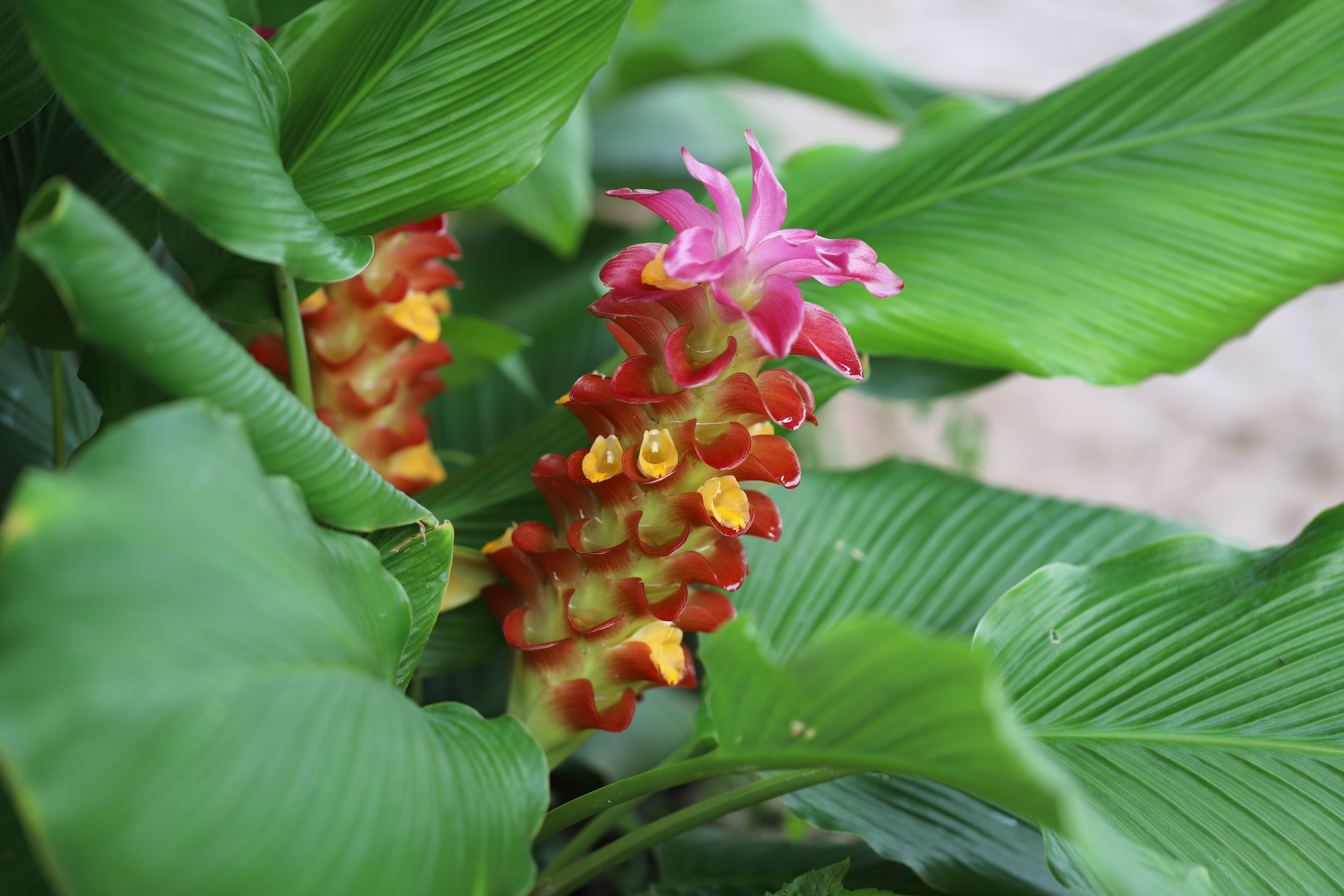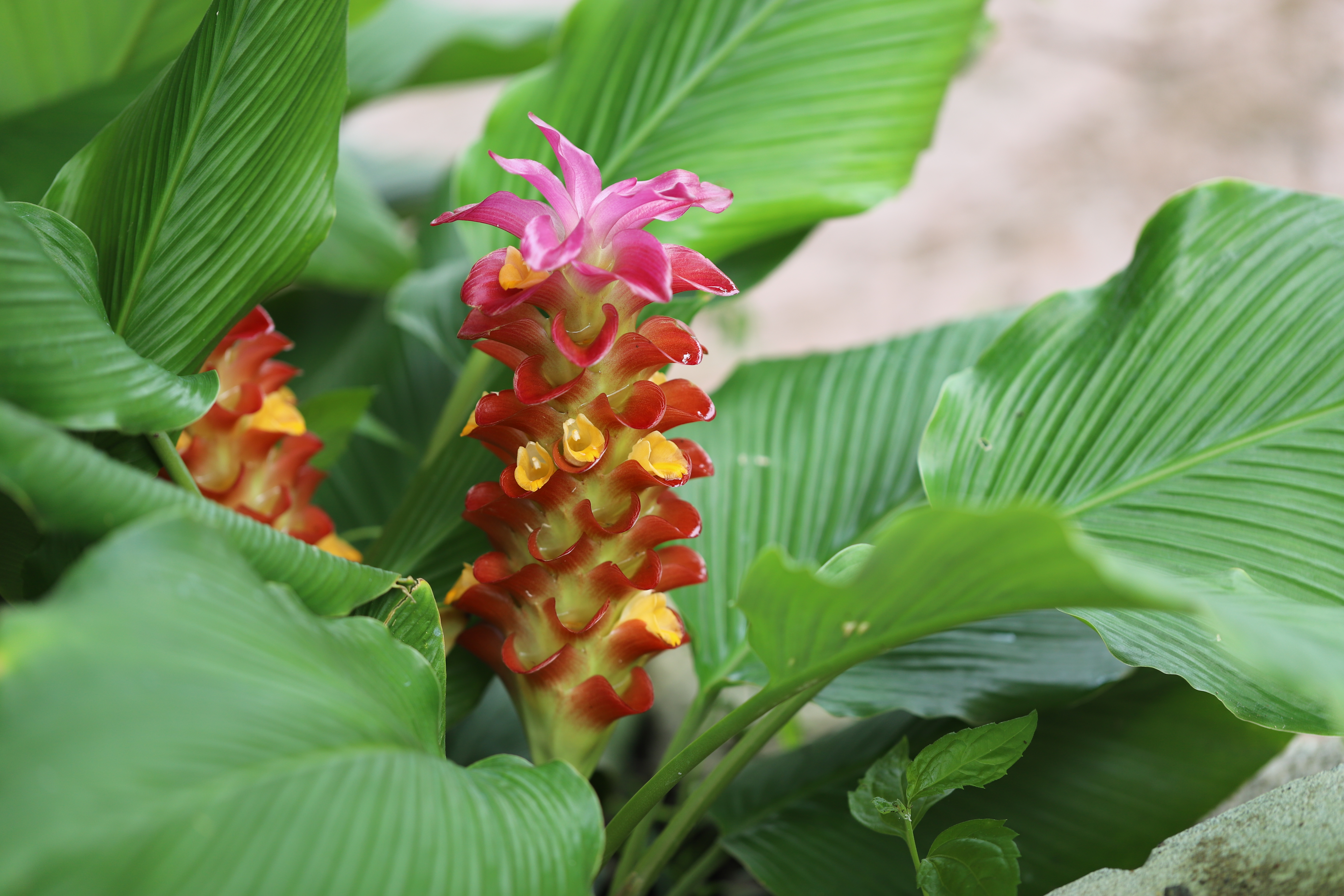 ช่อดอก เป็นช่อดอกแบบเชิงลดแน่น เกิดในตำแหน่งโคนของใบสุดท้าย ช่อดอกยาวตรง ใบประดับเวียนซ้อนเป็นช่อ โคนของกลีบประดับเชื่อมเป็นถ้วยวนขึ้น ใบประดับส่วนบน (Coma bract) มีลักษณะเป็นทรงรี ปลายใบประดับแหลมสีแดงอมชมพู ใบประดับแข็งปานกลางประมาณ 20-25 ใบ ใบประดับส่วนล่าง (Main bract) มีลักษณะเหมือนตัวยูกลับหัวสีส้มแดง ประมาณ 55-65 ใบ ความสูงของช่อดอก 55-60 ซม. ก้านดอกยาวตรง แข็งแรง ความยาวประมาณ 25-30 ซม. เส้นผ่านศูนย์กลางของก้านดอกประมาณ 1.7 ซม.