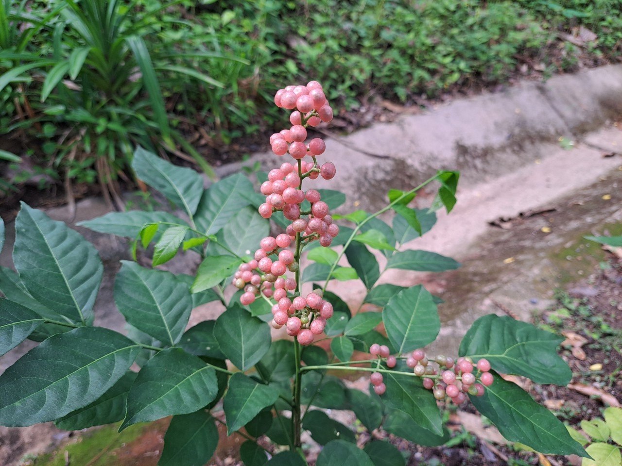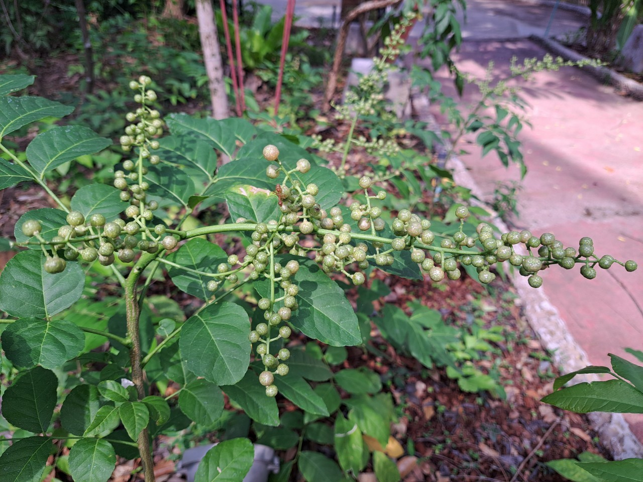 ดอก: ดอกสีขาวอมเขียว คล้ายดอกสะเดามีกลิ่นหอมอ่อนๆ ออกดอกที่ปลายกิ่ง