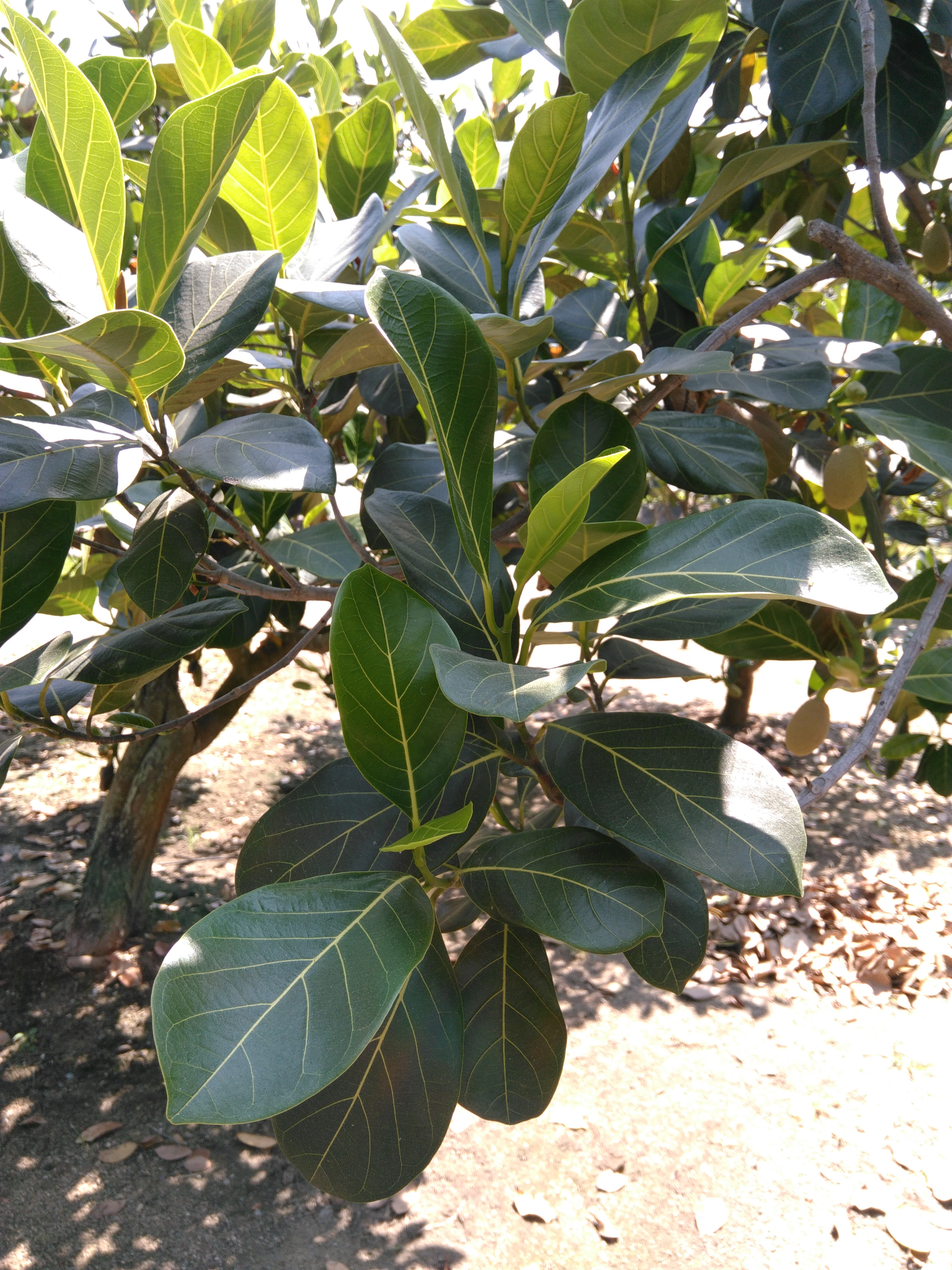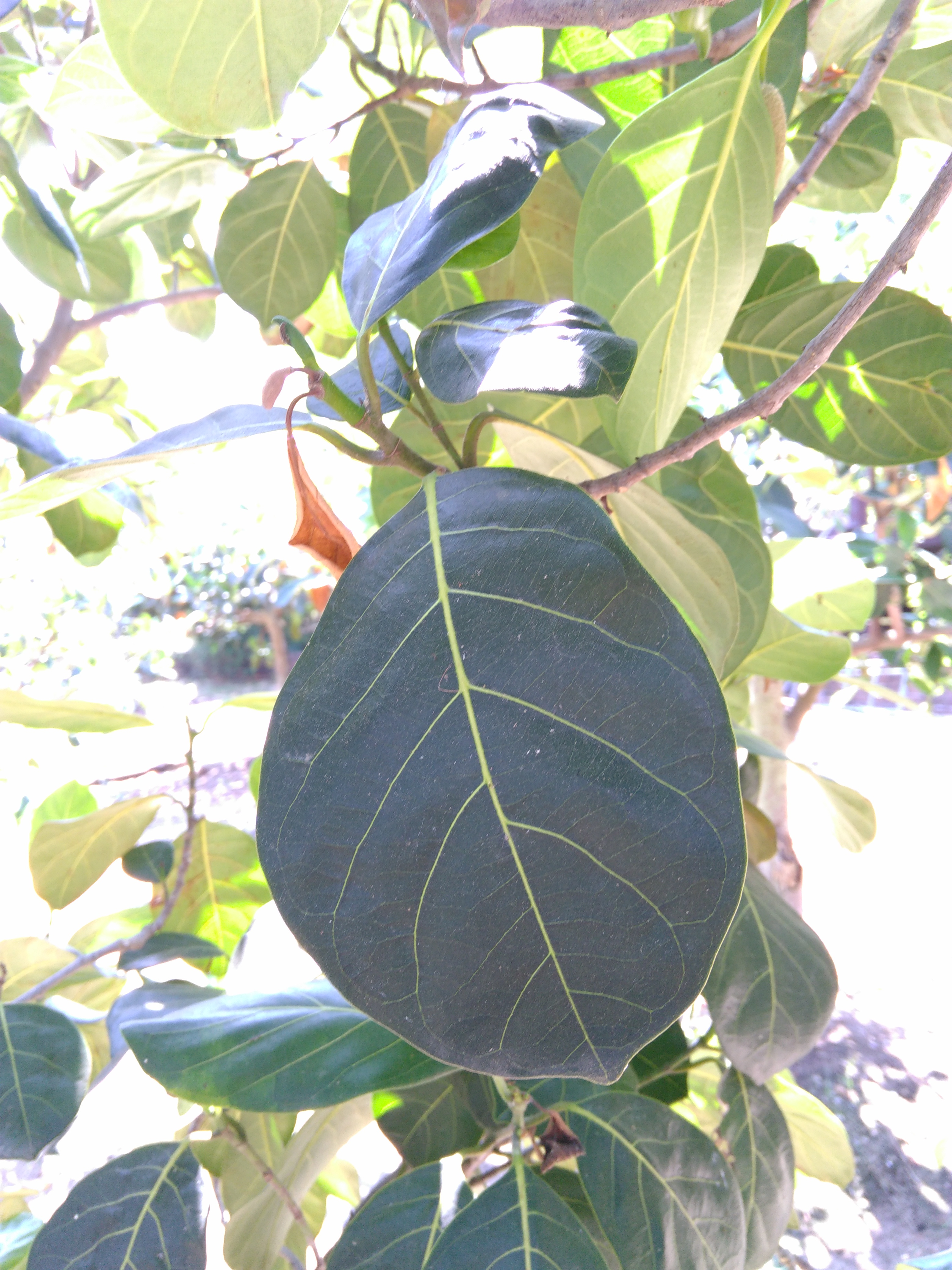 ใบ ใบเดี่ยว ออกเรียงสลับ เห็นเส้นใบชัดเจน ใบคล้ายรูปไข่ ปลายใบแหลม มีสีเขียวเข้มเมื่อแก่ และมีสีเหลืองเมื่อกำลังจะหลุดร่วง