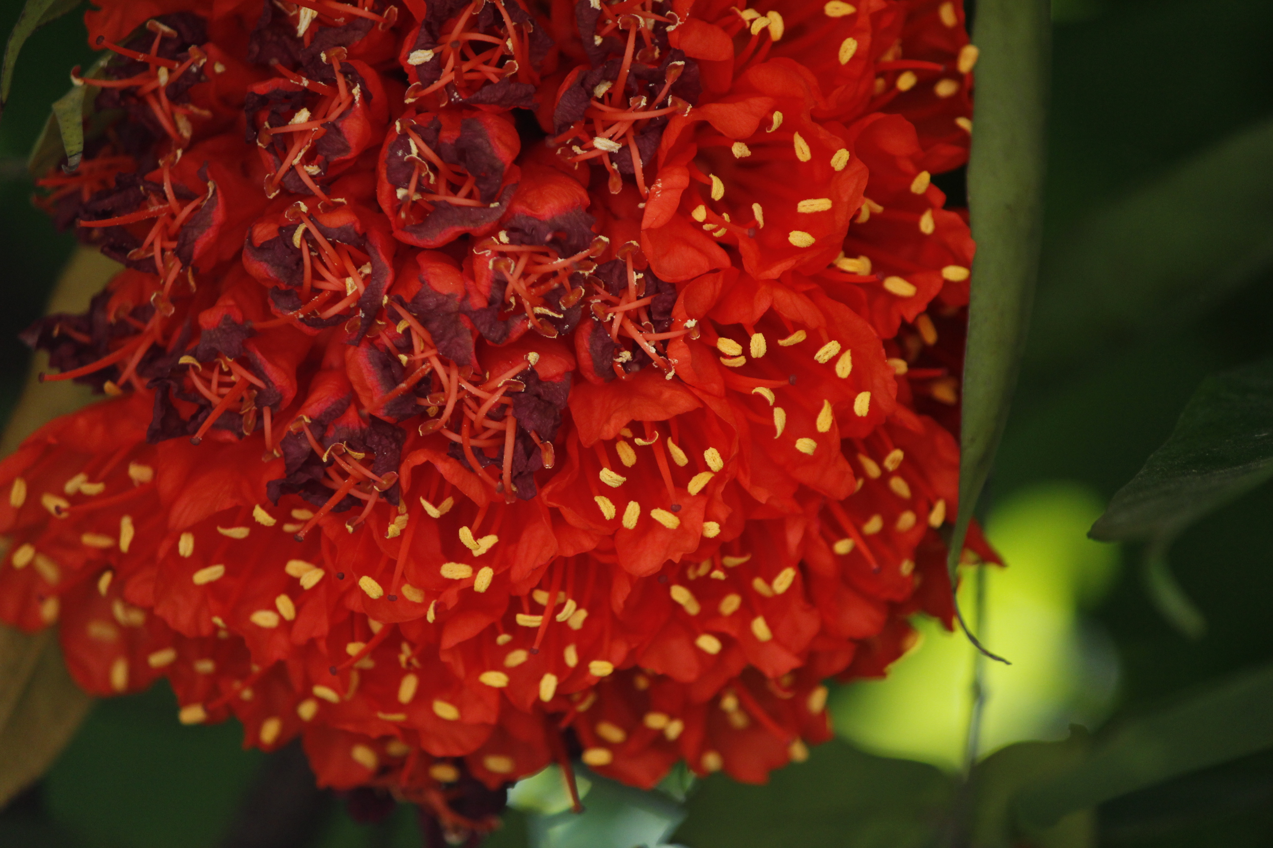 ดอก สีแดงสด ออกเป็นช่อกลม ขนาด 14-18 ซม. ดอกย่อยเรียงกันแน่นเป็นกระจุก กลีบรองดอกแยกเป็น 4 แฉก กลีบดอก 4 กลีบ เรียงซ้อนกัน เกสรผู้ 6 อัน